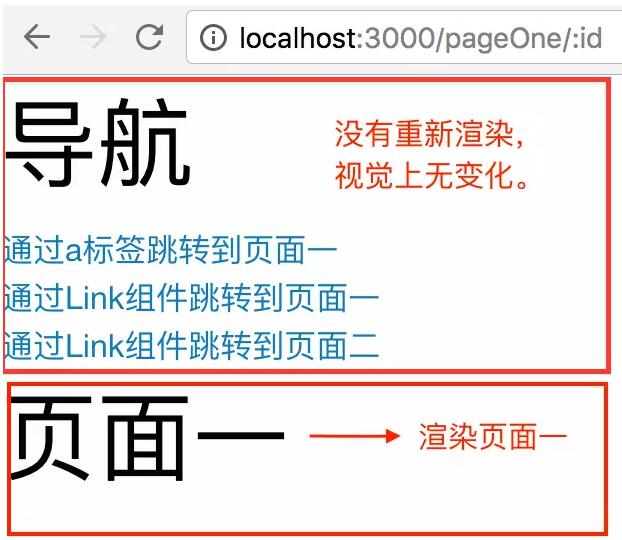 Vue的创新之处在于,它利用虚拟DOM的概念和diff算法实现了对页面的"按需更新",Vue-router很好地继承了这一点,譬如上图所示,导航组件和三个Tab组件(通过...,通过...,通过...)的重渲染是我们不希望看到的,因为无论跳转到页面一或是页面二,它只需要渲染一次就够了。<Link>组件帮助我们实现了这个愿望,反观<a>标签,每次跳转都重渲染了导航组件和Tab组件试想一下,在一个浩大的项目里,这多么可怕!我们的"渲染"做了许多"无用功",而且消耗了大量弥足珍贵的DOM性能!