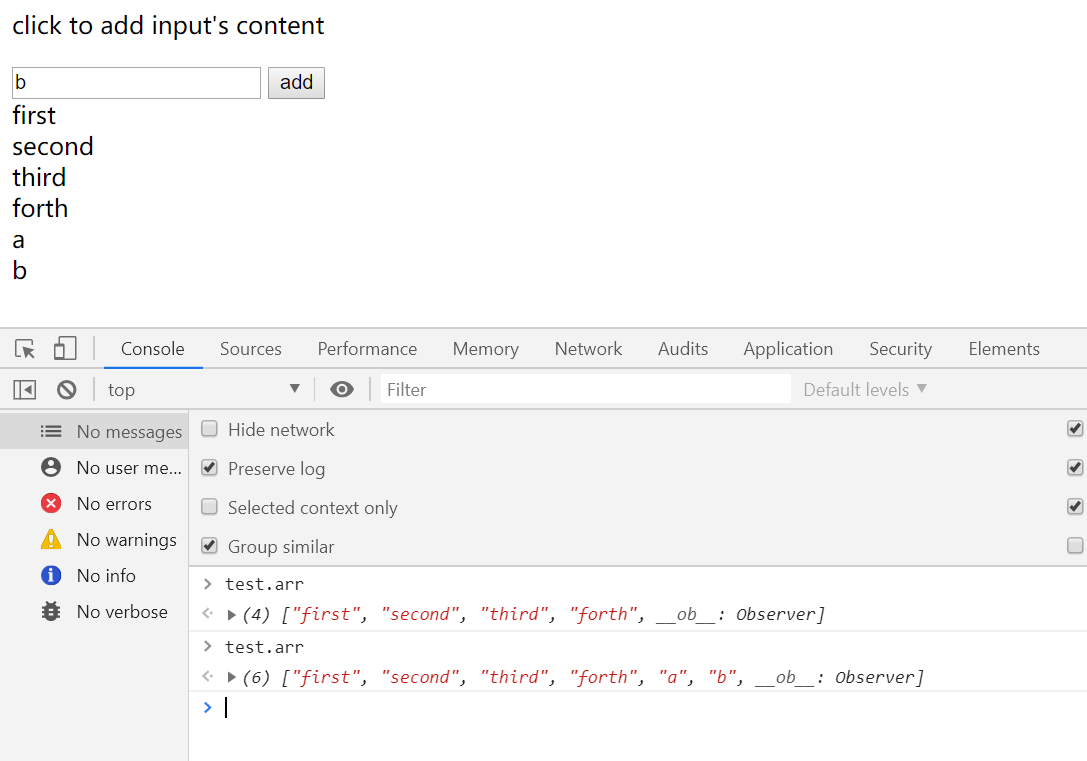 在输入框输入内容点击按钮,会把内容渲染到页面。同时会增加数组的元素