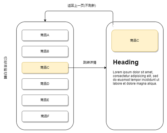 商品列表页面浏览,进入商品详情,点击返回仍然是之前浏览的位置