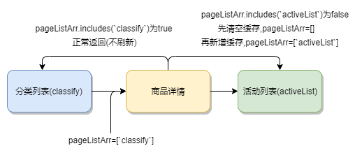 需要先判断 pageListArr 是否已缓存某些页面,只有从商情详情返回已缓存的列表页才是无刷新,未缓存的列表页面仍然需要新缓存