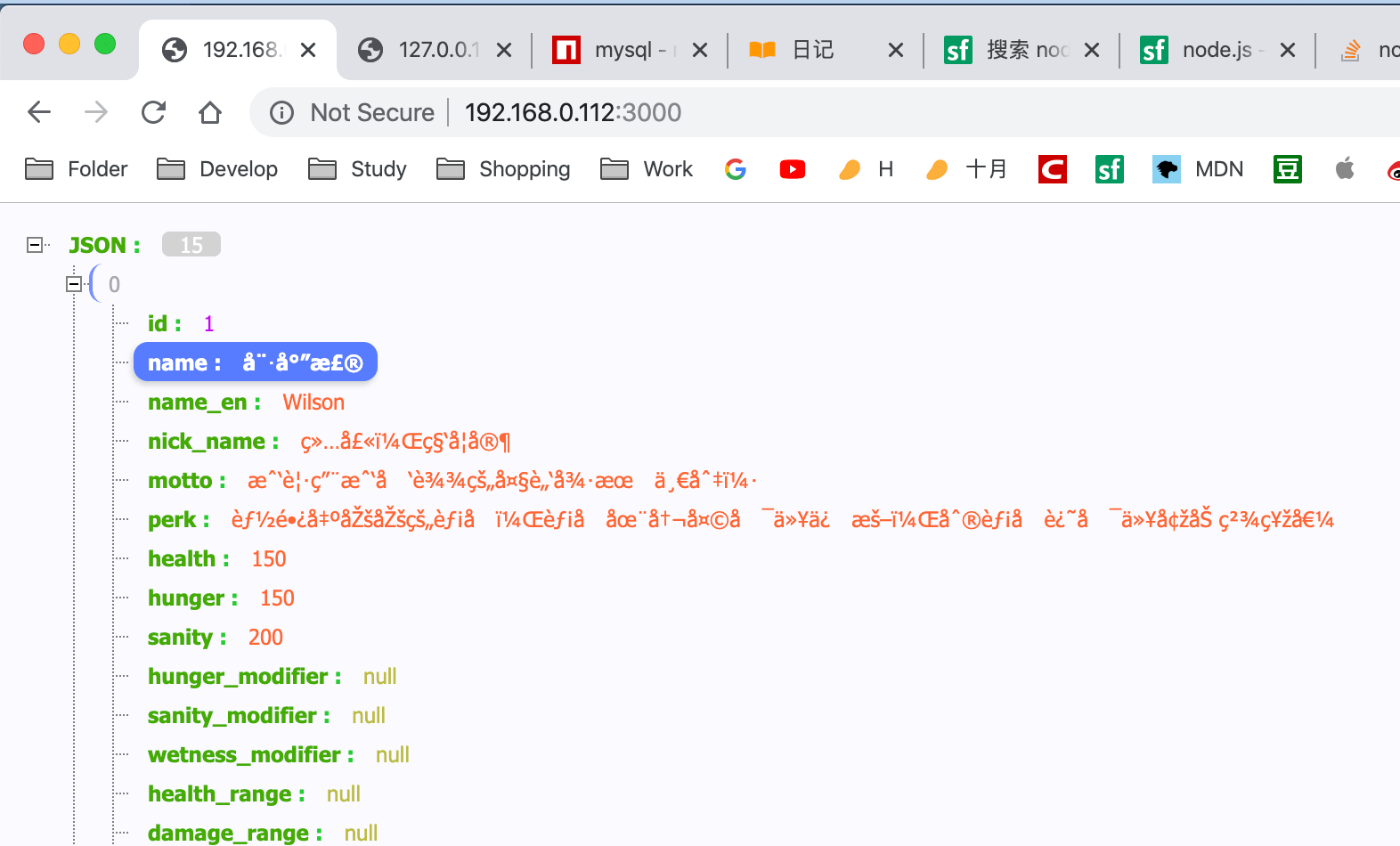 在学习使用 nodejs 写 web 服务的时候,在用 mysql 获取数据库信息的时候,返回的中文一直是乱码,无论配置 charset 与否,都是乱码。