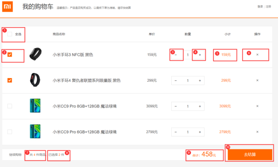 我们可以从上图中看到购物车的功能,这里我简单总结一下,分为以下十点: