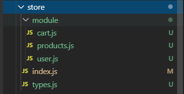 因为是购物车,所以这里我将这个购物车里的状态在Vuex中划分为了两个模块;products模块和cart模块,products模块用来存放所有的商品数据列表信息,cart模块放置了购物车内商品的列表信息;这里需要提的一点是,因为cart模块中的每条商品信息是不需要提供类似prodcuts中一条商品的所有字段的,只需要提供几个关键的字段,然后到prodcuts模块中去查询该条商品的信息即可。可能描述不清,但在下面我会用代码展示,大家就会清楚了。