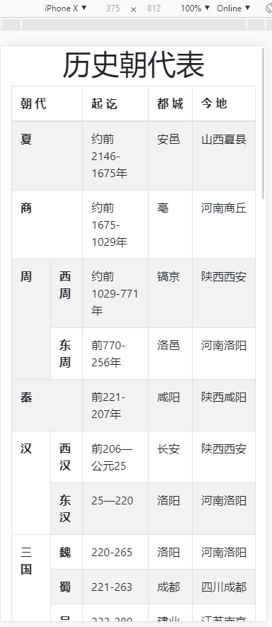 以上所述是小编给大家介绍的使用Bootstrap做一个朝代历史表,希望对大家有所帮助,如果大家有任何疑问请给我留言,小编会及时回复大家的。在此也非常感谢大家对脚本之家网站的支持!