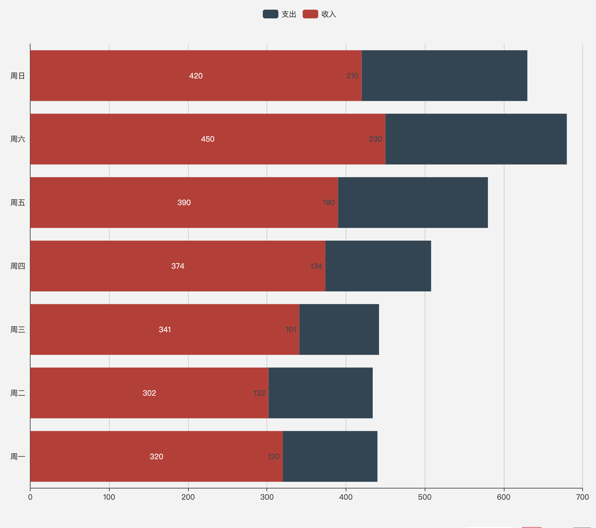 既可以横向比较同一天的收入支出情况