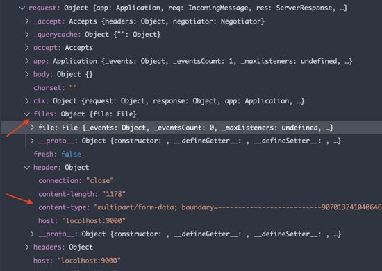 可以看到后端接收到到 content-type 为 multipart/form-data , 我们并没有手动的去设置请求的 content-type 会自动添加上。