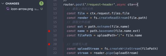 下面代码会将接收到到文件流写入到后端local。可以看到 icon-arrow.jpg 已经成功的从中间层发送到后端