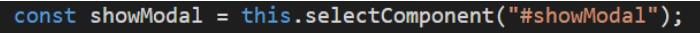 // 引入组件后通过js selectComponent('#id')方法获得组件对象 再调用组件对象下的showModal方法 传入配置参数即可 可以在组件中自定义内容节点