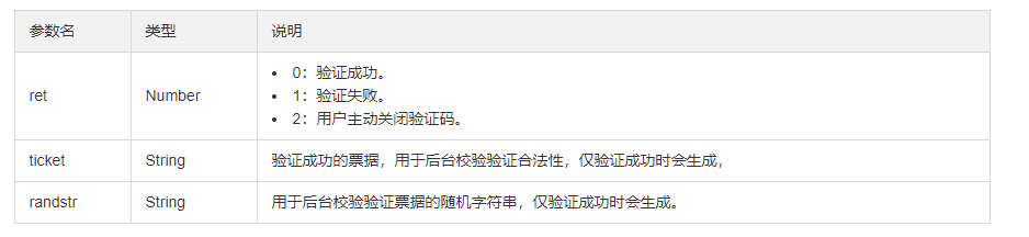 验证结果(captchaResult) 参数说明: