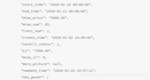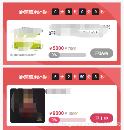 2、其中skl_arr[i].nowdate_time是服务器当前时间,skl_arr[i].end_time商品倒计时结束时间,skl_arr[i].curTime是自己定义的一个字段,用于上述html中的:time="item.curTime"使用