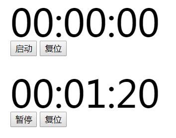 点击暂停暂停计时,点击复位回到最初始状态。