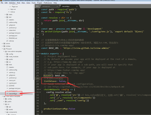 找到文件vue.config.js (备注我这里是vue-cli3.0)打开文件