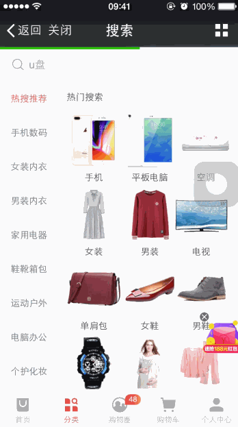 从上图京东购物效果上来看,在点击搜索拉起一个搜索界面,然后点击左上角反回,只是将搜索界面收起,而页面没有重新像读取进度条一样去返回,而我页面需要的正是这样的效果,下面就用vue来做一个这个过程的 demo 吧。