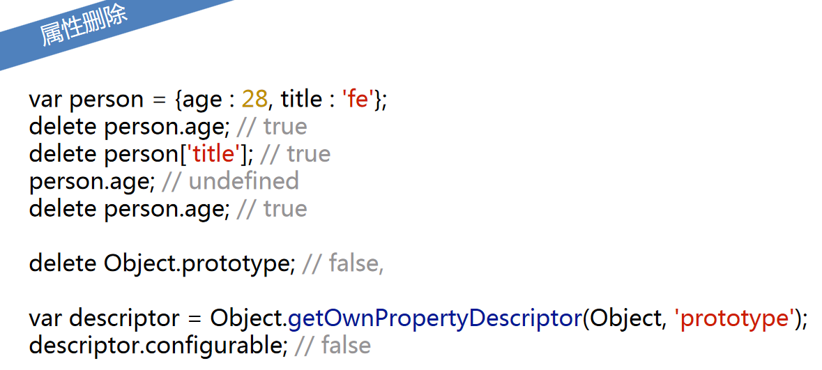 1.delete不存在的属性,依旧返回true。