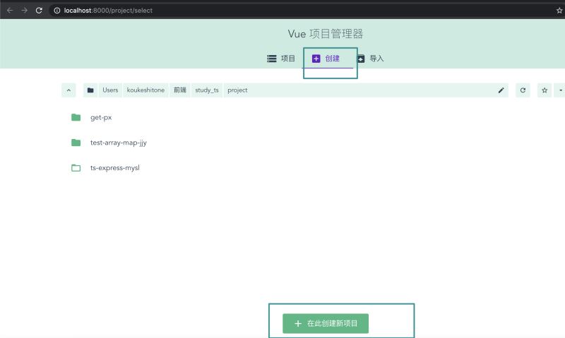 接着浏览器就会自动打开Vue项目管理器的页面,接着就可以在这上面创建项目了。
