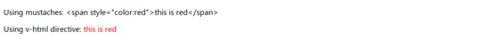 直接用双大括号包裹只是普通文本,如果想实现HTML代码效果,需要加入 v-html 指令