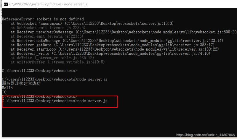 在websocket下创建一个文件server.js,用来编写nodejs代码,首先我们要引入ws模块的构造函数并且实例化: