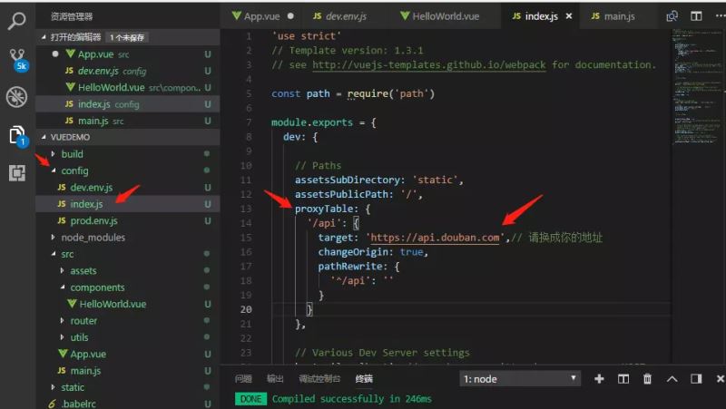 上面这个是同一地址的跨域,如果要拿不同地址的跨域,只需要更改config->index.js->proxyTable的配置,增加地址块就行。