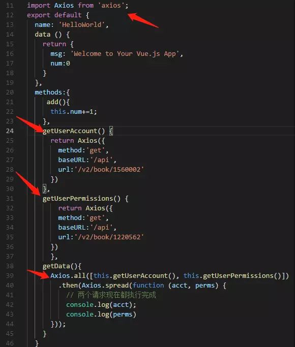 如果getData()中不适用箭头函数,就需要注意this问题。