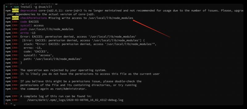 再npm命令前加sudo如 sudo npm install -g @vue/cli