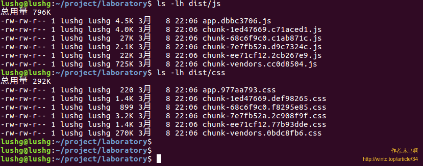 js和css文件夹下各多出来了4个chunk-*文件,刚好对应我们动态引入的4个组件,这样在我们访问到某个页面,才会加载页面对应的chunk-*.js和chunk-*.css。观察文件大小,核心的JS文件chunk-venders大小从769K降低到了725K,因为我的4个页面代码都非常简单,看起来优化效果不大,然而在一个页面很多的大型项目中,优化效果会非常明显,CSS部分也是如此。