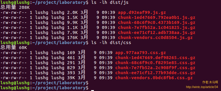 打包一下看看dist下的js和css文件夹,现在文件都被压缩成了.gz: