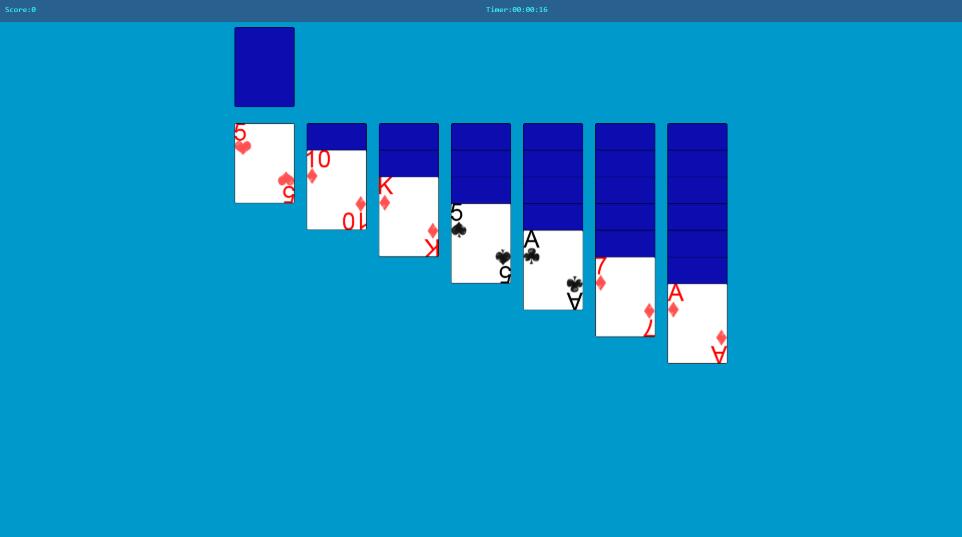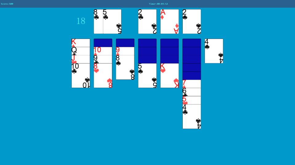 注意:这里事件注册不是在每张牌上,因为52张牌实际上都画在canvas上,然而52张牌的坐标都是知道的,所以通过计算就可以知道用选择了哪些牌,正在将牌移到哪里。等玩家松手后就可以实现码放操作。