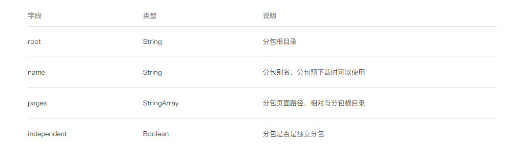开发者通过在 app.jsonsubpackages字段声明项目分包结构: