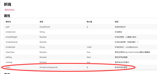 原因是 BmPolyline 文档中虽然有 icons 属性,但是对应的源文件中并没有props接收 icons