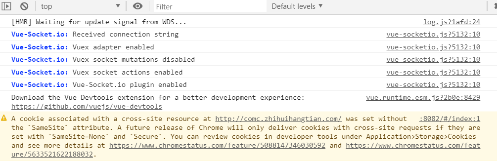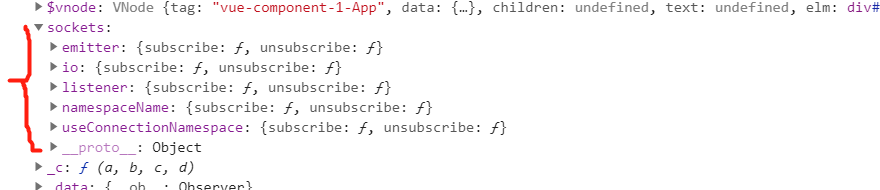 打印一下this发现因为引入vue-socket.io的原因,this上面挂了一个sockets属性: