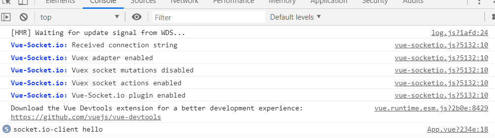 没问题,数据传过来了,但vue-socket.io为啥不行,不管了,先向服务端发送一条信息看能不能收到: