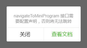 1.navigateToMiniProgram Api需要用户主动触发跳转,且在跳转至其他小程序前,将统一增加弹窗,询问是否跳转,用户确认后才可以跳转其他小程序。如果用户点击取消,则回调fail cancel;