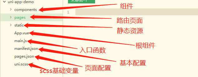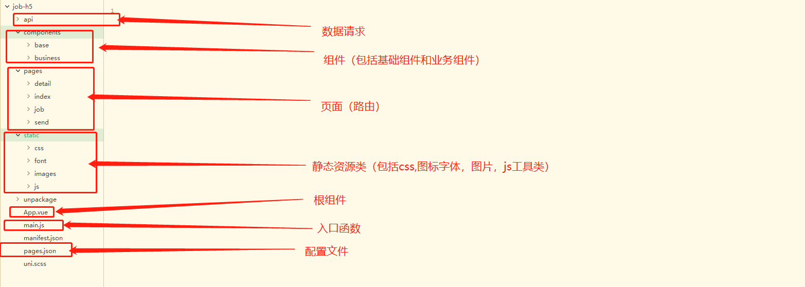目录结构基本和小程序的目录结构相似,只是多了个基础组件的文件夹;