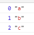 let arr=['a',b','c']; arr.forEach((val,index)=>console.log(index,val));