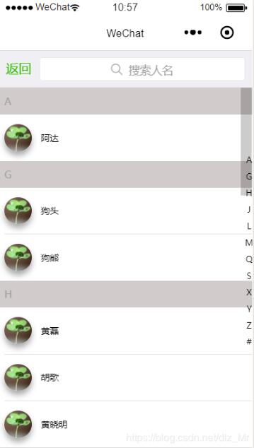 在小程序项目中需要有一个选择人员项,想着看着好看一些,所以做成类似微信联系人的界面,由于本人是后端人员,效果不是特别好看,ui使用的是weui