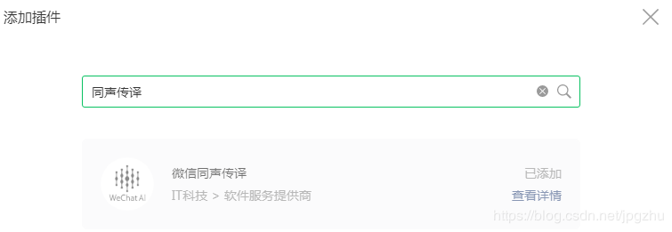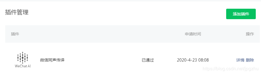 进入微信小程序后台-->进入设置-->第三方设置-->添加插件->搜索同声传译-->完成添加。