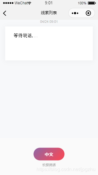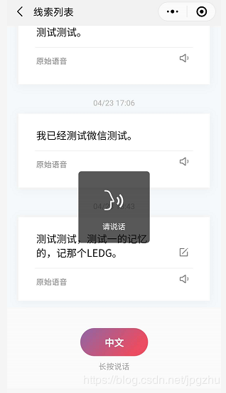 UI参考微信官方的DEMO:长按按钮进行录音,松开按钮实时将录音转换为文字。