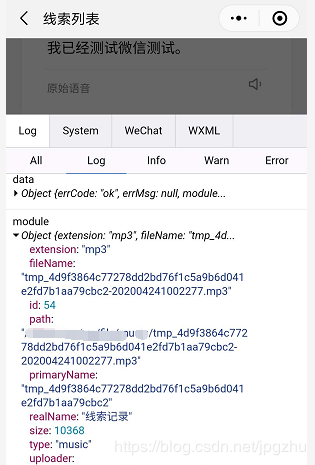 * 将微信小程序传入的json对象写入数据库,并同时将文件上传至服务端