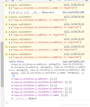 将每一列需要验证的item,路径查找好之后,form就可以具体监控到所有的表格输入,并触发正确的验证了,如图:
