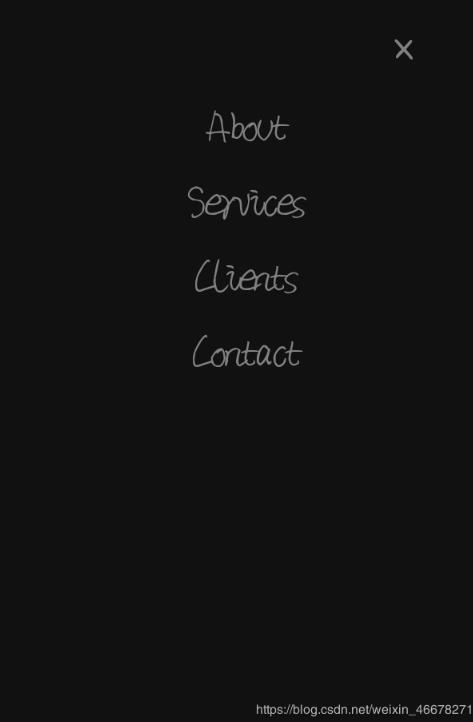 <div id="mySidenav" class="sidenav"> <a href="javascript:void(0)" class="closebtn" onclick="closeNav()">×</a> <a href="#">About</a> <a href="#">Services</a> <a href="#">Clients</a> <a href="#">Contact</a> </div> <h2>全屏幕侧边栏</h2> <p>点击以下菜单图标打开侧边栏</p> <span style="font-size:30px;cursor:pointer" onclick="openNav()">☰ 打开</span>
