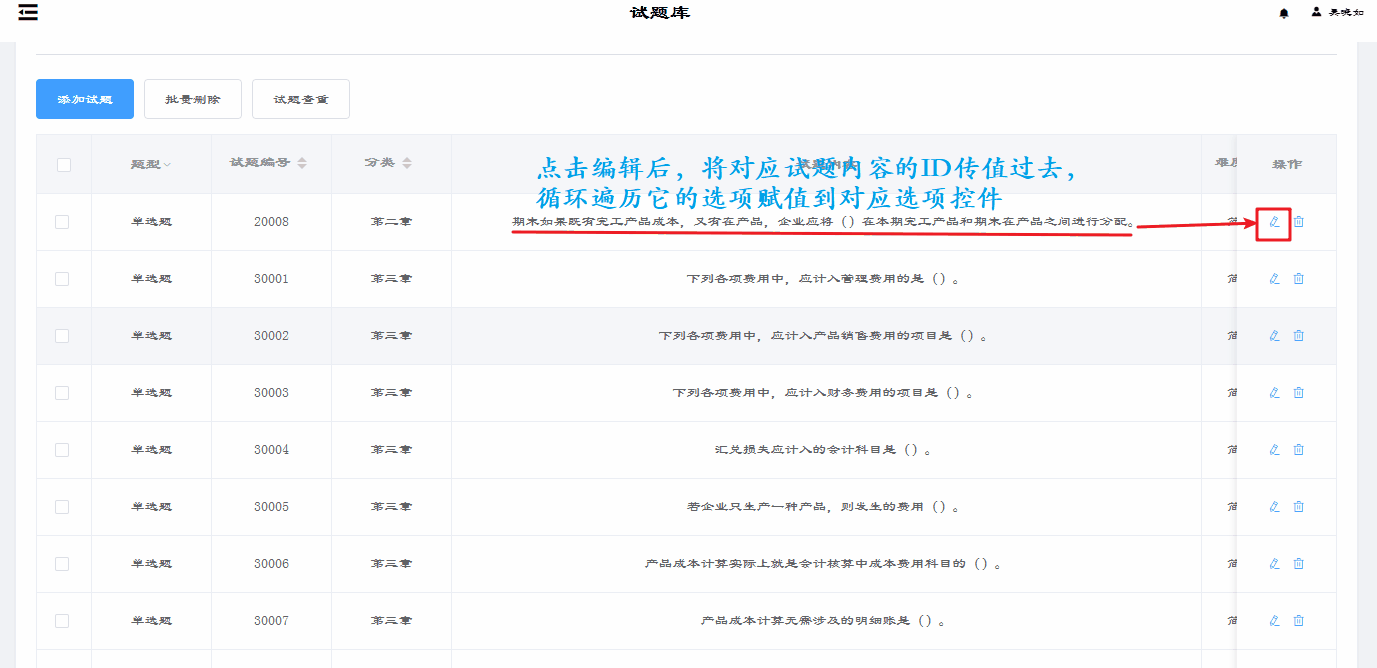 功能实现,多选、判断等不同类型的试题都可以使用这个方法实现赋值。