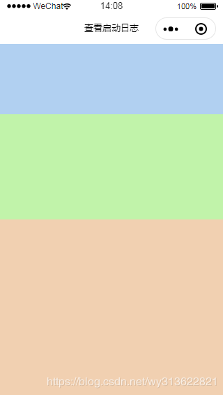 其次,我们来说说容器view的宽高应该尽量使用百分比的方式来写,下面我们来看看以下的示例: