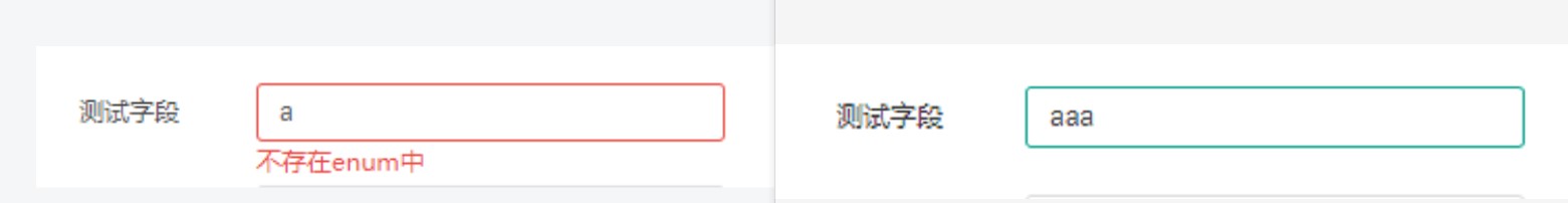 {type: 'enum', enum: ['aaa', 'bbb'], message: `不存在enum中`, trigger: 'change'}