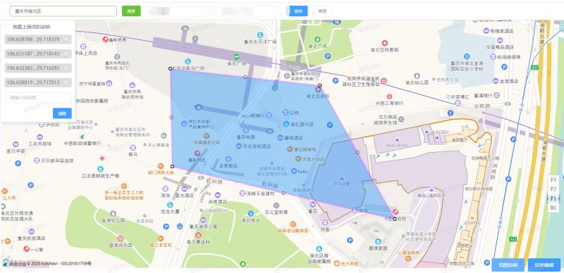 图里的 “请输入经纬度” ,可以输入一堆的经纬度坐标,在按“Enter” ,可以直接形成多边形;(注意:输入的格式要和上面显示的坐标全部选中Ctrl+c下来的格式一样)