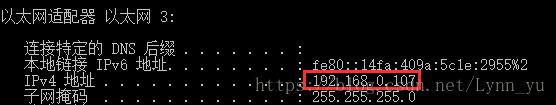 WIN+R,输入cmd回车,打开命令提示符,输入ipconfig,查看本地IPv4;