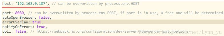 host: '192.168.0.107', // 原为: hotst: 'localhost'
