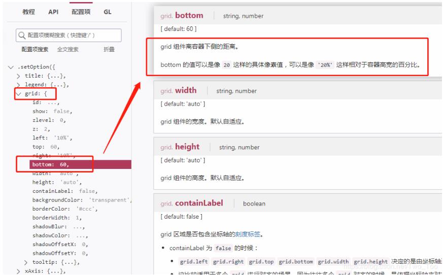 找到echarts中的 grid 配置 :