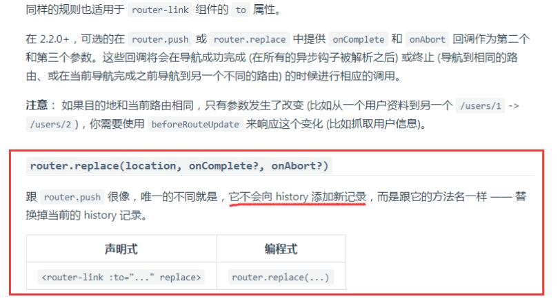 vue-router官网提供了 router.replace(location, onComplete?, onAbort?) 的方式,使得不向 history中新增记录,但是我未尝试成功,具体原因暂不知。