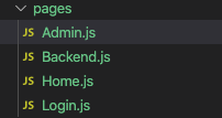要实现路由鉴权,我们还得一步一步来,我们先用React-Router搭建一个简单的带有这几个页面的项目。我们直接用 create-react-app 创建一个新项目,然后建了一个 pages 文件夹,里面放入我们前面说的那几个页面: