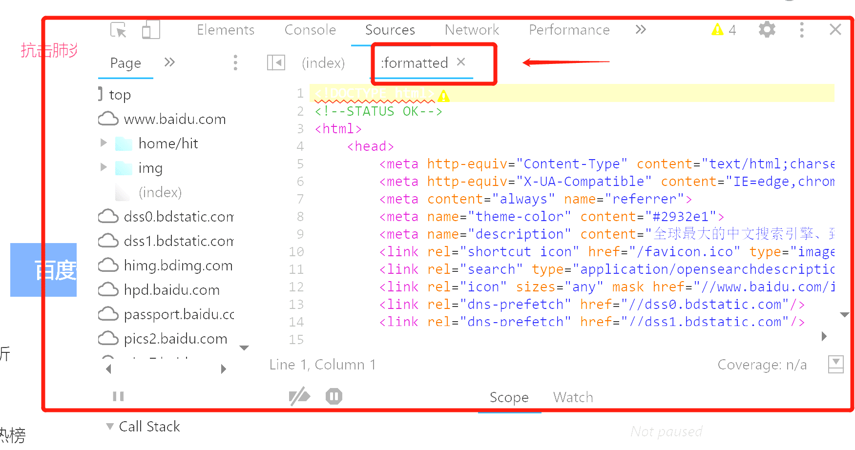 也是在Sources页下方就可以看到。